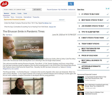 The Arthur Cohn's film The Etruscan Smile starring Brian Cox is showing in the US trough virtual cinema.